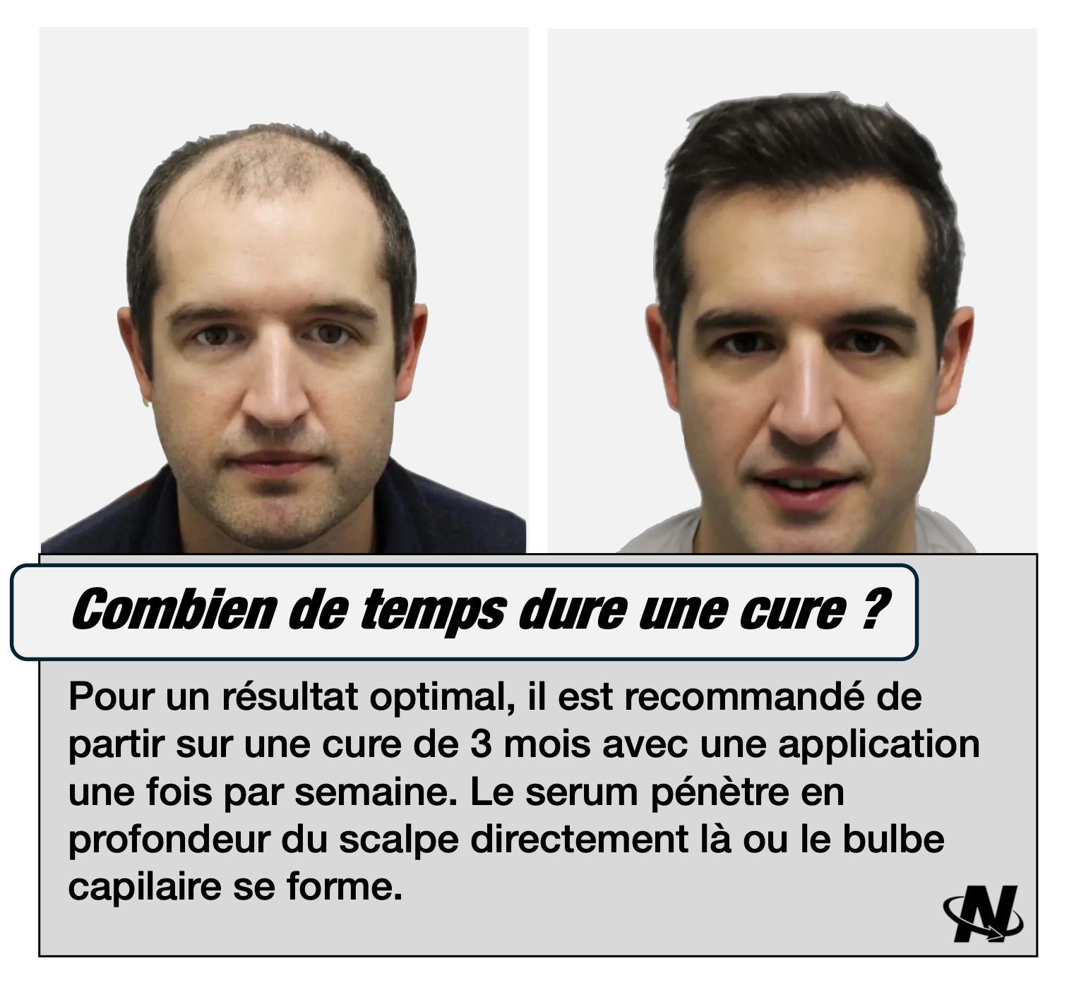 Le serum contenu dans la Cure NOVA® est une combinaison unique de principes actifs qui agissent directement contre le DHT, responsable de la chute capillaire.