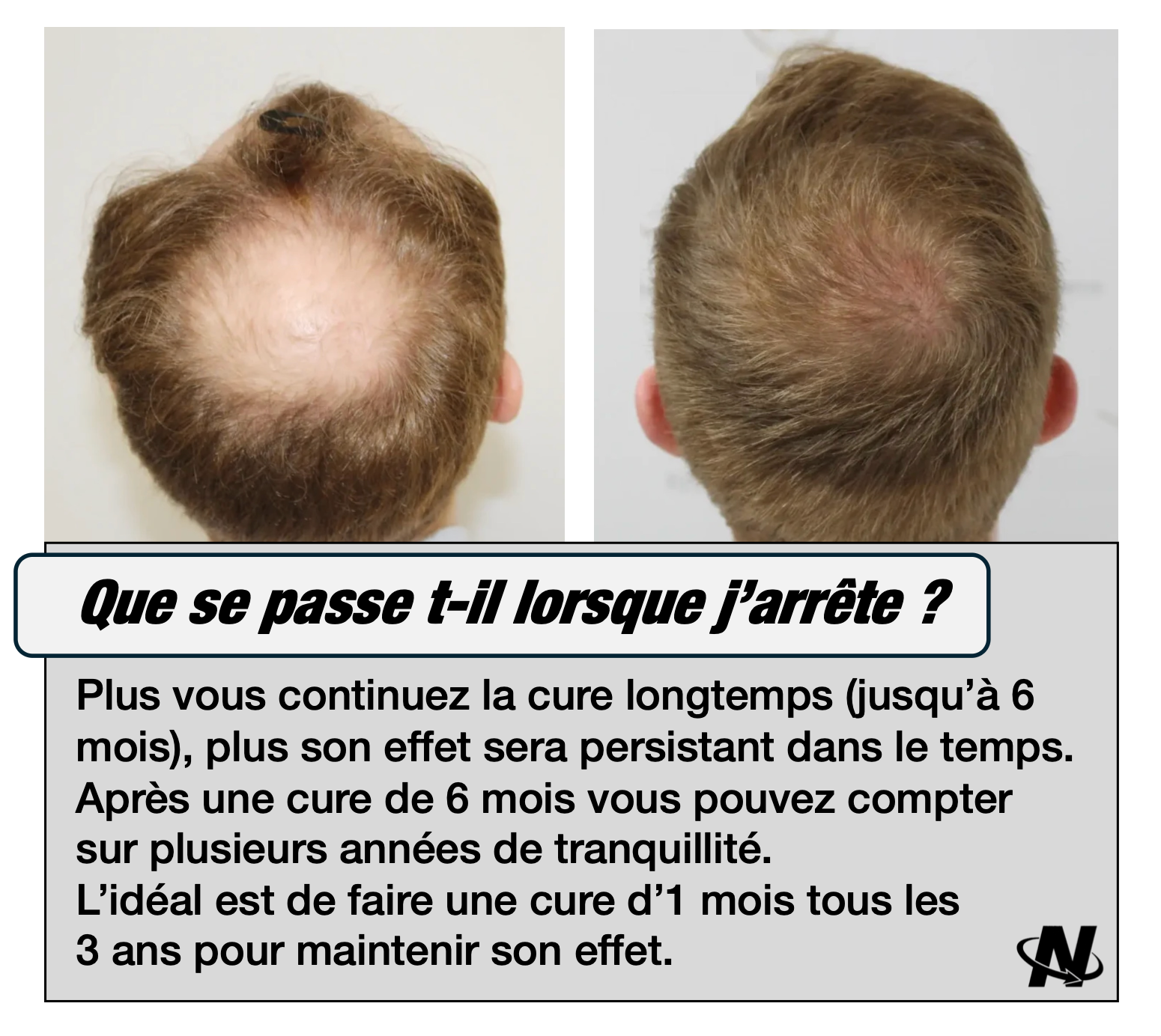 Une cure complète et idéale dure 3 mois. Il est possible de prolonger cette cure dans les cas les plus extremes de perte capillaire jusqu'à 6 mois.